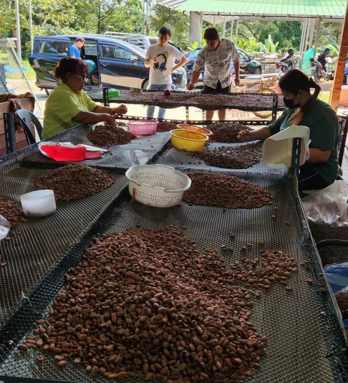 然而,泰国的可可总产量直到今天仍然非常有限。根据Factfish的数据,除了21世纪初的一个小高峰(约1500吨),每年的产量徘徊在125吨左右。这种缺乏增长的原因之一是气候变化和与这种变化相关的长期干旱。这就是为什么春丰集团把它抬得更高的主要原因之一。这群在泰国南部拥有25000棵可可树(约25公项)的独立农民现在也在关注泰国北部。他们正在靠近缅甸的清莱和南种植超过15万棵树,海拔在300到500米之间。